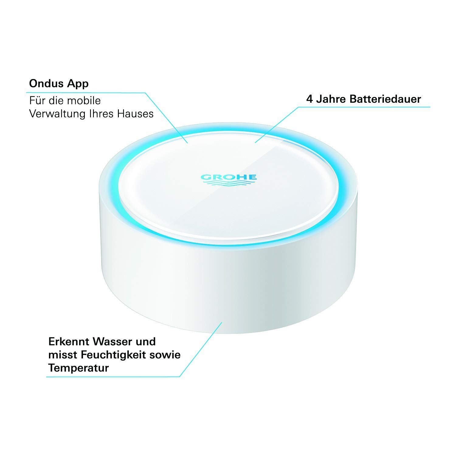Lieferumfang: GROHE Sense Set | SmartHome - 1x GROHE Sense Guard + 3x GROHE Sense | Intelligente Wassersteuerung + 3x Sense Wassersensoren | Alpinweiß | 22502LN0